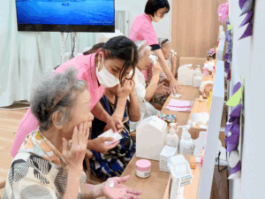 スキンケア後には、BBクリームや口紅で仕上げをされる方もおり、「さらに美人になっちゃった」「しっとりして白くなった気がする」と笑顔で喜ばれていました。中には「肩もやると気持ちいい」「昨日自転車押して帰ったから疲れてたの、すごく気持ちいい」と日常の疲れも癒される方もいらっしゃいました。