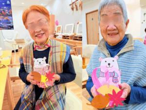 【11月1週:機能訓練】「可愛いくできた!」「いろいろなことして充実」創作レクでクマの飾り物を作りました✨