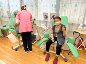また、運動面ではウェルトニックによる下肢筋力トレーニングや、健康王国を使った上・下肢運動を実施。
