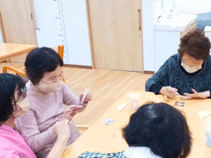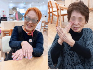 週の後半には、華やかなカラーネイルの時間もありました💅✨色を選び、シールを貼り、完成した自分の爪を眺めては「手洗うのがもったいないわ〜!」「見て〜きれいに塗れたの!」「これかわいいね、似合うよ〜!」と、皆さまうきうきとしたご様子。