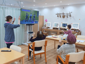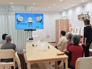 金曜日の口腔体操では「ぶんぶんぶん」の曲に合わせてパタカラを行い、音楽にのせて楽しく口を動かす姿が印象的でした。