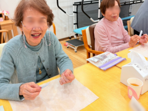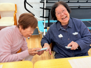 初めてネイルケアに参加された方からは、「みてみて!こんなにピカピカになってる!」「違いすぎる〜!」と弾むような声があがり、周りの方も「ここに来たらオシャレになるんやで〜」「美しくなれるよ〜」と笑顔で応えられていました。