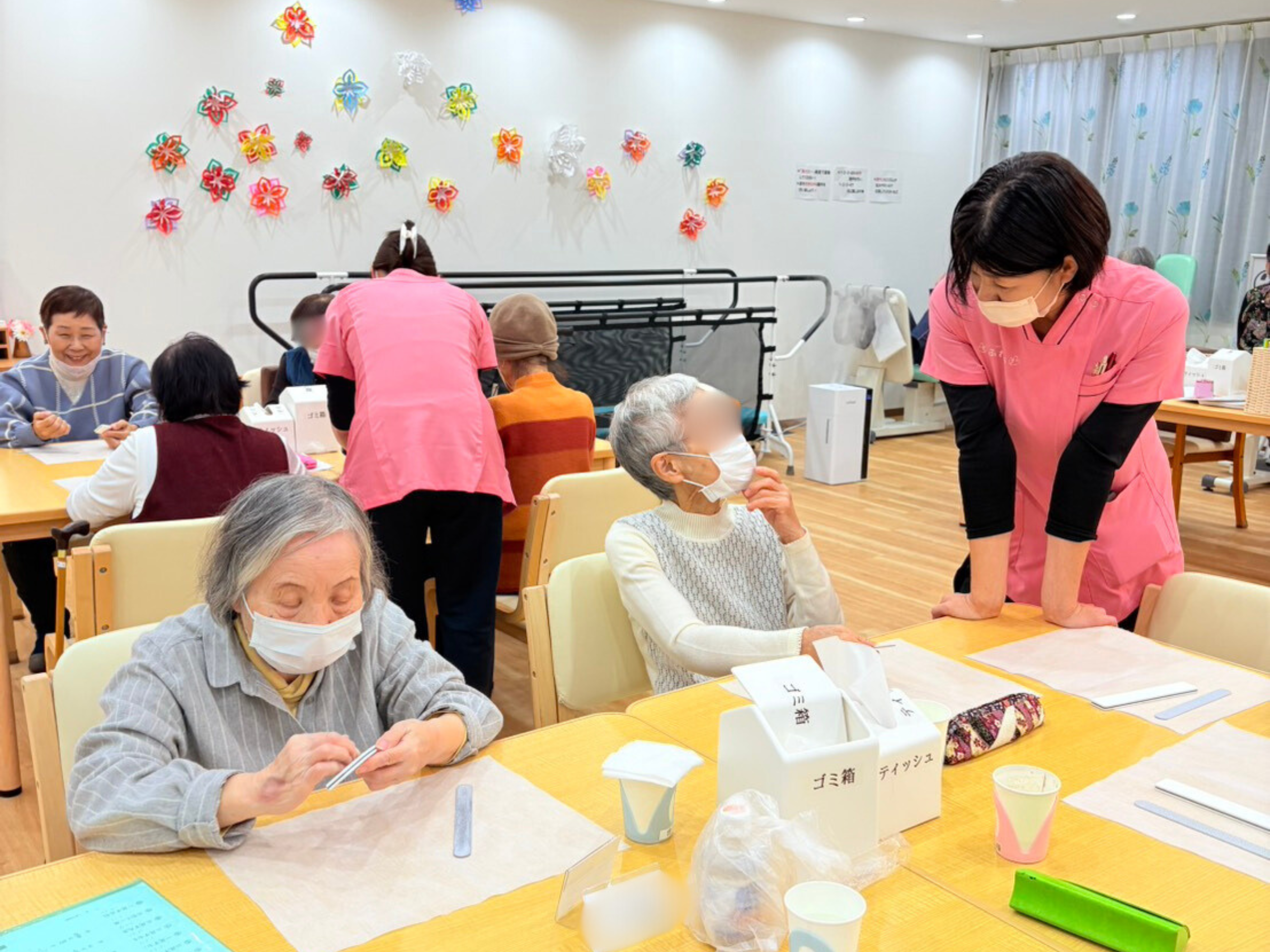 初めてネイルケアに参加された方からは、「みてみて!こんなにピカピカになってる!」「違いすぎる〜!」と弾むような声があがり、周りの方も「ここに来たらオシャレになるんやで〜」「美しくなれるよ〜」と笑顔で応えられていました。