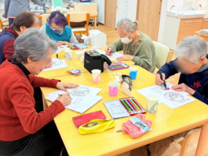 ふれあ姫島では今週も、ウェルトニックでの運動や脳トレ、創作活動など、生活につながる機能訓練に楽しく取り組んでいただきました。