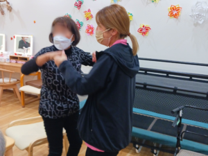そのほかの曜日でも、「ここに来ると安心するね〜」「今日はこの運動を頑張ってみようかな」と、ご自身のペースで取り組まれる姿や、会話を楽しみながら過ごされる姿が見られ、穏やかで温かい時間が流れていました。