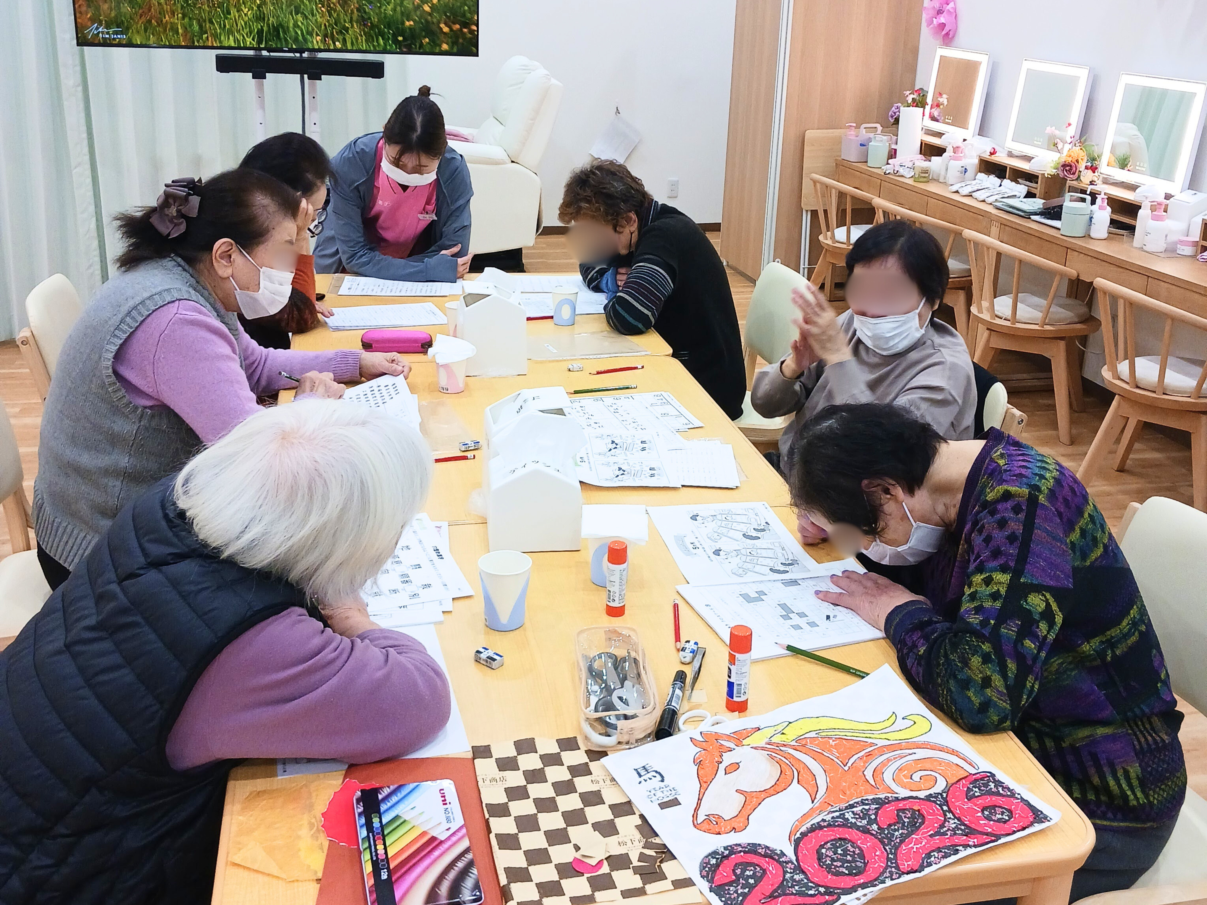 脳トレの時間も、おしゃべりを交えながら和やかに進み、「話してたら、ほんまに時間があっという間やね」と、笑顔が広がるひとときに。
