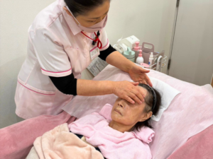普段は「私の顔してもしゃーない、今さらや」と話され、いつもはハンドセラピーを選ばれることが多いご利用者様が、今回はフェイシャルを選択されました。