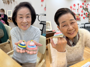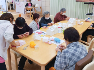 最初は「難しそう…こんなんできひんわあ…」と話されていた方も、作り始めると夢中になって取り組まれ、「いやあ〜かわいい!!」「家に飾るね!」と完成した作品を嬉しそうに見せてくださいました。