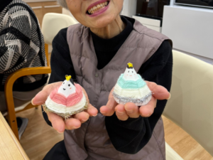 最初は「難しそう…こんなんできひんわあ…」と話されていた方も、作り始めると夢中になって取り組まれ、「いやあ〜かわいい!!」「家に飾るね!」と完成した作品を嬉しそうに見せてくださいました。