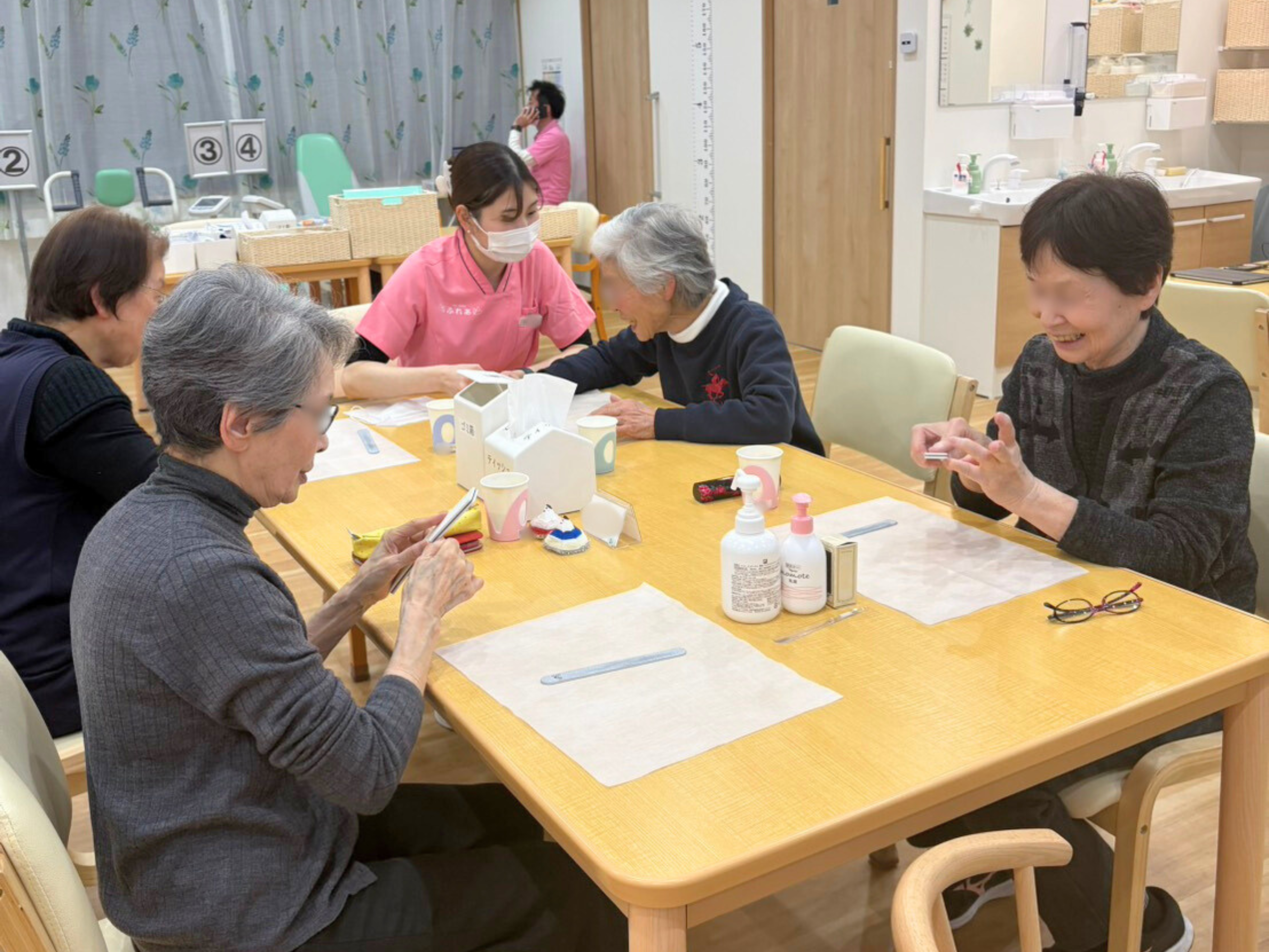 ふれあ姫島では、運動・口腔ケア・美容レクを組み合わせながら取り組んでいます。