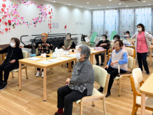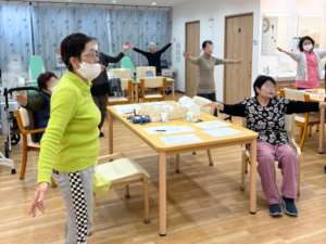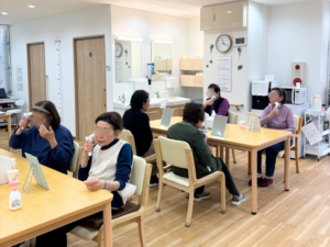 ふれあ姫島では、運動・口腔ケア・美容レクを組み合わせながら取り組んでいます。