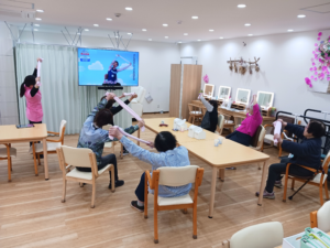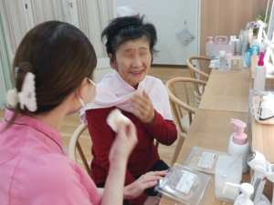 ふれあ姫島では、運動・口腔ケア・美容レクを組み合わせながら取り組んでいます。
